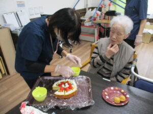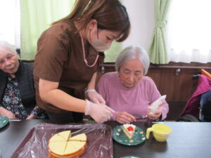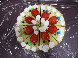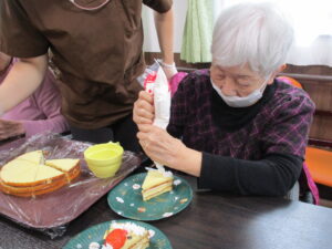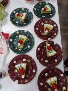 皆さんと作ったクリスマスケーキ作りの様子でーす。