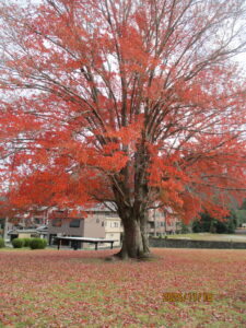 真っ赤な紅葉が美しい飯南高校のハナノキは松阪市の秋スポットとなっています。